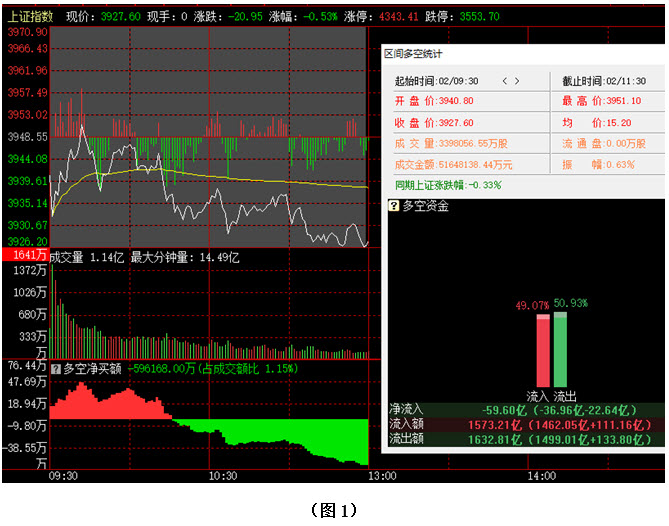 今日早间大盘小幅低开,随后虽试图上攻,但依然在3950点附近遇阻,无法向上形成突破,市场只得逐步回落整理,好在幅度不大,至中午收盘时,指数位于3927点。从日K线图上看,今天上午大盘未能继续向上快速拉升,指数小幅回落,再次回到5日成本均线下方,预示着市场在3900点一带或仍有出现反复的可能。从下方的多空资金来看,早间开盘后,多方率先占据优势,但资金进场的持续性不强,随着大盘遇阻回落,场内抛压逐步增大,资金由红翻绿,并不断流出。截止到中午收盘时,沪市当中多方力量低于空方超过1个百分点,资金流出50多亿。从六大战区的情况分别来看,截止到今日中午收盘时,除沪市小盘战区有6.77亿资金流入之外,其余五个战区均为资金流出状态,其中不仅沪中大盘战区与科创板战区资金流出双双超过30亿,创业板战区的资金流出额更是达到50亿之上。可见今日上午空方再度施压,整体上资金明显以流出为主,说明在昨日快速反弹后,多方后续力量并未及时跟上。在这种情况下,反弹的持续性就无法保证,行情仍会出现多次反复。建议大家仍要控制好仓位,同时密切关注多空资金的进出情况以及5日成本均线的得失情况,若午后多方很快反击,大盘重新夺回5日成本均线,短期仍可继续看多;但如果午后空方持续施压,指数跌幅进一步扩大,则不排除市场会有二次探底的可能。